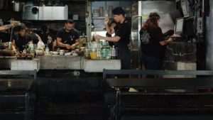 Expendio de Maíz, casi oculto entre otros locales sin rótulo ni indicaciones visibles, recibe a las personas en cuatro largas mesas comunales bajo un toldo en la banqueta. Aquí no hay reservas, ni carta: llegas, apuntas tu nombre, y el equipo comienza a servir sorpresas desde la cocina abierta, preguntando cuánto apetito tienes y tus preferencias.